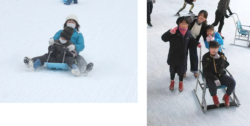 冬はスキー、スノーボード、ソリ、アイススケート、どれかを楽しみます♪