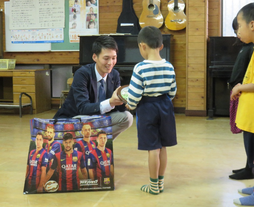 アパマングループより日用品の寄贈がありました。子どもたちもかわいいグッズを直接もらって、早速自室で使っています。