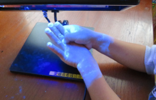愛媛県看護協会から手の洗い残しがチェックできる機械をお借りして、全児童・職員で自分の手洗いの状況チェックをしました。