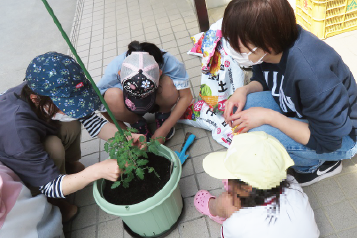 今年度からいろいろ新しい活動がスタートしています。その一つの「園芸」活動でトマトの苗を植えました。実が収穫出来たら、ピザ作りを計画しています♪水やり頑張らなくっちゃ!