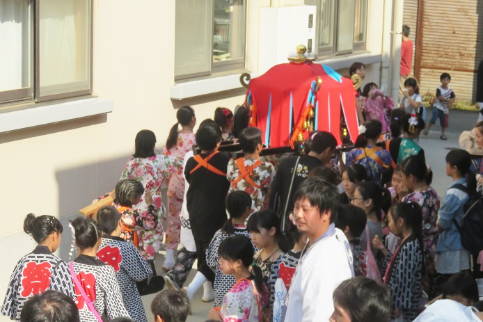 今年も和田地区の子ども神輿が三愛園へ来てくれました。留守番の子ども達もお接待を頑張りました。